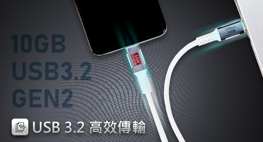 該產品採Type C to C設計, USB3.2 GEN2除了滿足48V/5A最大充電功率外,更具備10Gbps大量資料傳輸能力。此外,本產品適用於多種電子裝置的音源與影像資料傳輸,例如電腦、平板、行動硬碟、虛擬VR眼鏡…等。 具備快速充電,可同時傳輸大量資料的Type C充電/傳輸線,將是您工作或娛樂上的最佳選擇。
