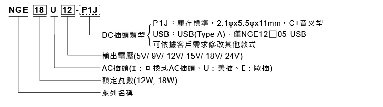 NGE12/18 系列:12W/18W 環球認證插牆可換式 AC 插頭節能適配器
