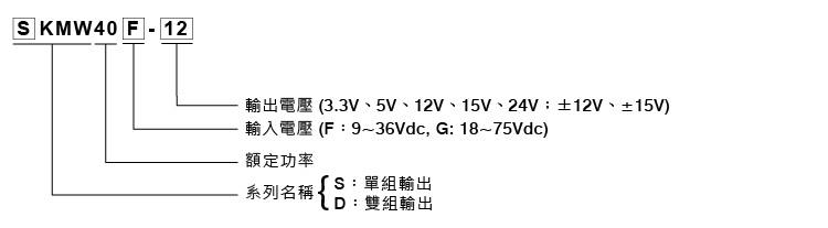 SKMW40/DKMW40 系列:40W 4:1 寬壓輸入穩壓隔離 DC-DC 轉換器