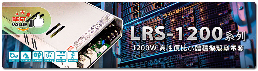 LRS-1200系列:1200W高性價(jià)比小體積機(jī)殼型電源