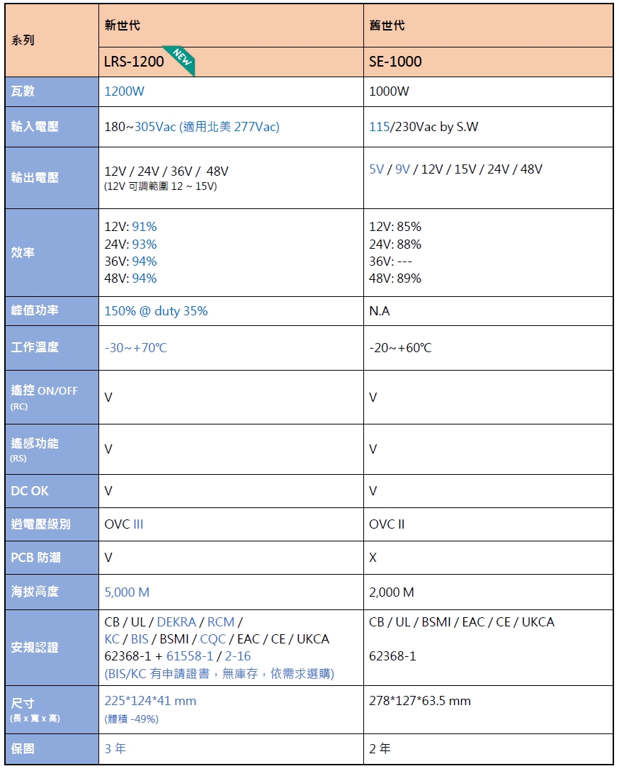 新舊世代產(chǎn)品對(duì)比:LRS-1200系列 與 SE-1000系列