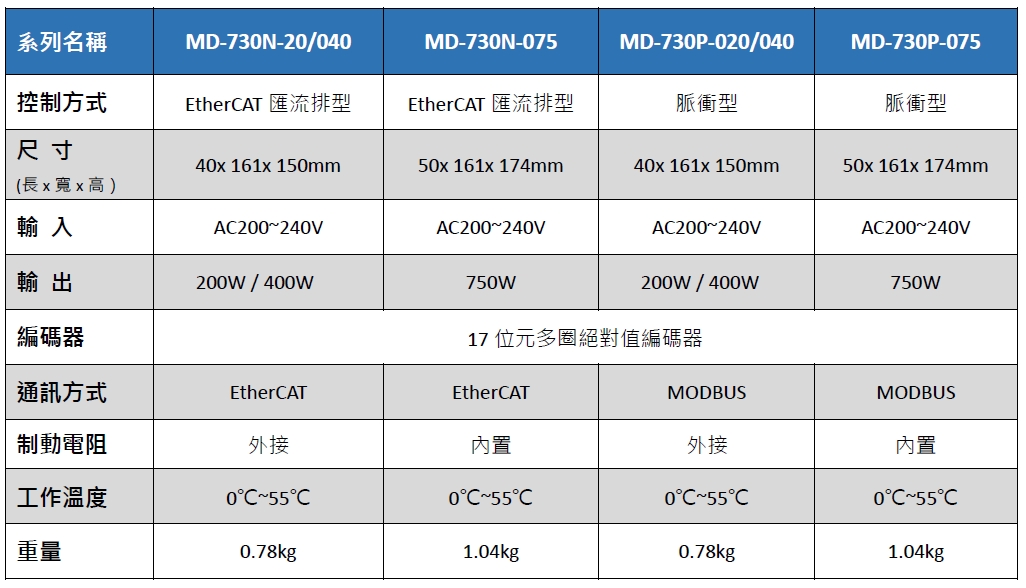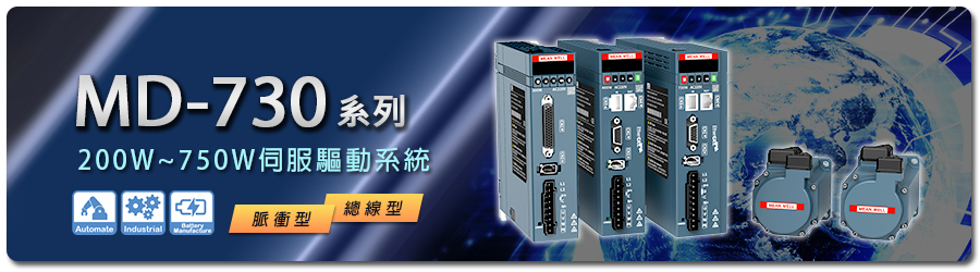 隨著工業自動化、智慧製造和機器人技術的快速發展,對高精度、高動態回應、高可靠性的運動控制需求日益增長。全球標準電源領航者–明緯,深耕標準電源領域四十餘年,以高性價比與高產品效益為基礎,推出MD-730系列伺服驅動器,包含匯流排型與脈衝型兩種控制方式,200W、400W、750W共計6款產品,對於 3C、光伏、電池、包裝及其它眾多行業領域的標準應用,提供優異的性能,為企業提供高效生產力。