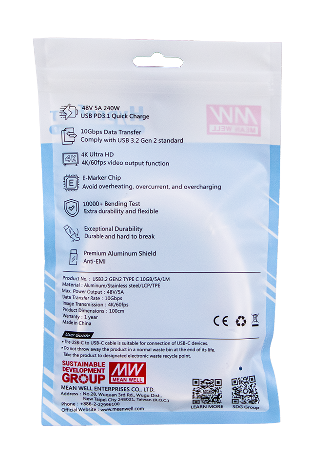 這次將品牌變更為 MEAN WELL,同時產品從原本高傳輸 10 Gbps 與快充 100W 升級到 240W (輸出提升到 48V),兼容 PD3.1 快充協議,提供更高功率的充電與更快的充電速度,不再侷限於手機、相機、鍵盤、滑鼠和耳機等 3C 電子裝置,舉凡筆記本電腦、音響、遊戲機、家電、高功率電器與電動工具皆適用。