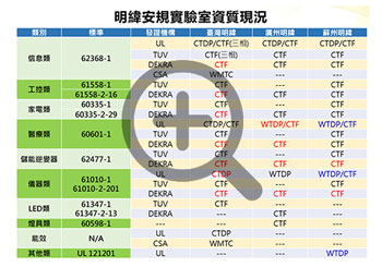 本公司服務(wù)產(chǎn)品範(fàn)圍廣泛,涵蓋以下類別:資訊類、音響視聽類、醫(yī)療產(chǎn)品、各式燈具(傳統(tǒng)與 LED)、LED 驅(qū)動(dòng)器(LED Driver)、插頭、插座與開關(guān) 各式零組件、綠能儲(chǔ)能設(shè)備與節(jié)能相關(guān)測(cè)試。我們不僅深耕各國(guó)技術(shù)標(biāo)準(zhǔn),亦掌握國(guó)際法規(guī)趨勢(shì),替客戶提供前瞻性的合規(guī)建議。同時(shí),熟悉各國(guó)驗(yàn)證標(biāo)誌申請(qǐng)流程,與當(dāng)?shù)貙?shí)驗(yàn)室緊密合作,可協(xié)助客戶快速取得多國(guó)驗(yàn)證標(biāo)誌與證書,加速產(chǎn)品上市,拓展全球市場(chǎng)。