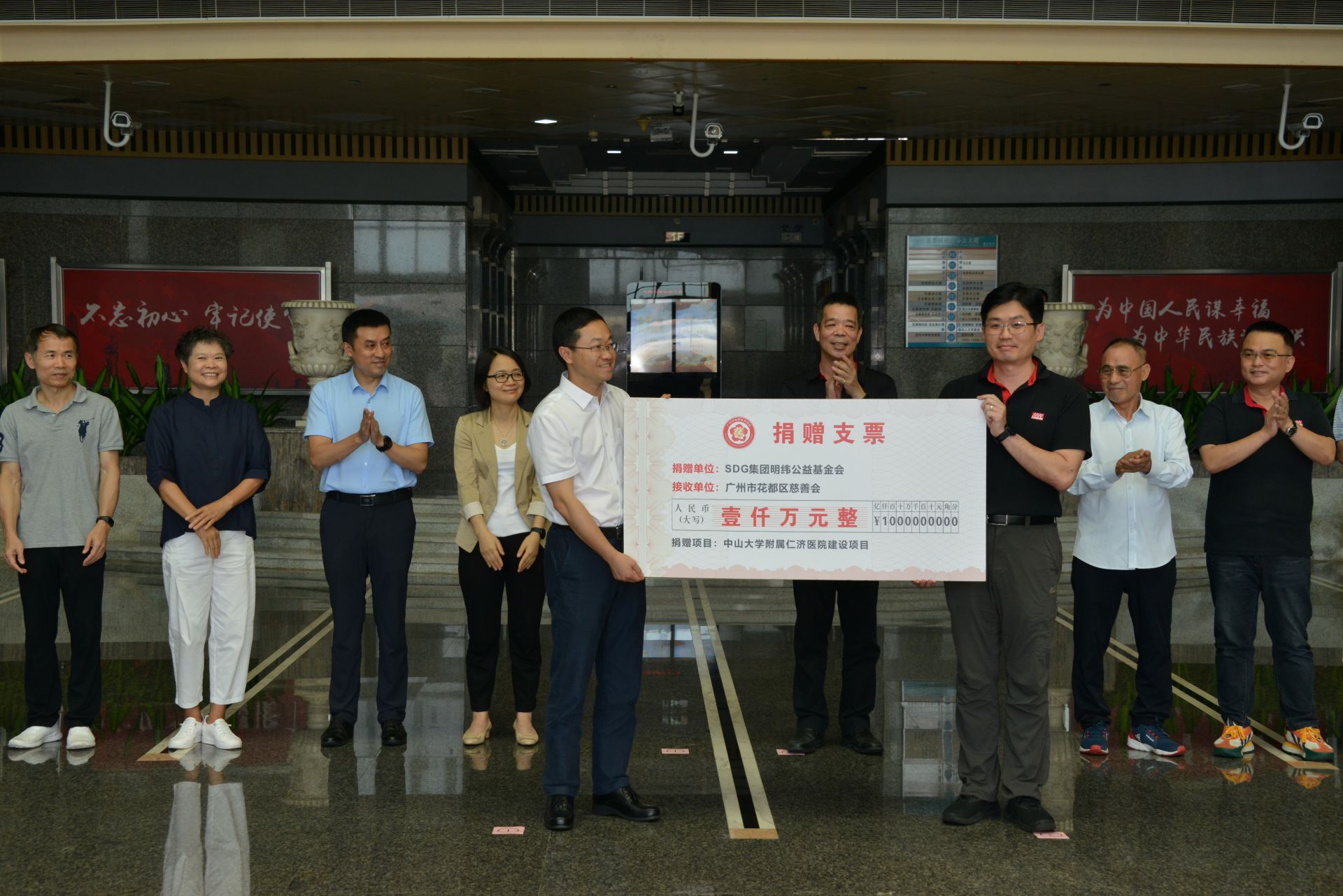 SDG集團明緯基金會向花都區慈善會捐贈人民幣1200萬元,其中1000萬用於中山大學附屬仁濟醫院的建設,200萬元用於其他公益專案。