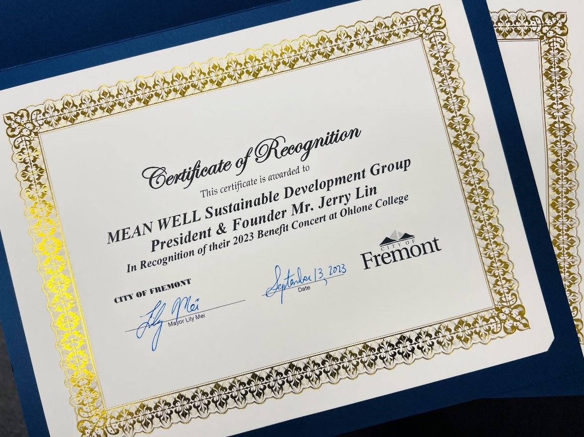2012年美國明緯舉辦了第一場慈善音樂會,音樂會邀請了當地的慈善團體參加並表演,以此募集善款捐贈。我們以此為起點,奠定了舉辦慈善音樂會的傳統。2023年9月13日,公益音樂會再次出發,以前所未有的規模引起了社會各界的廣範關注,Fremont市長Lily Mei特別出席音樂會,並頒發證書表彰此次音樂會,肯定了明緯在Fremont成爲美國最幸福城市的過程中做出了傑出的貢獻。