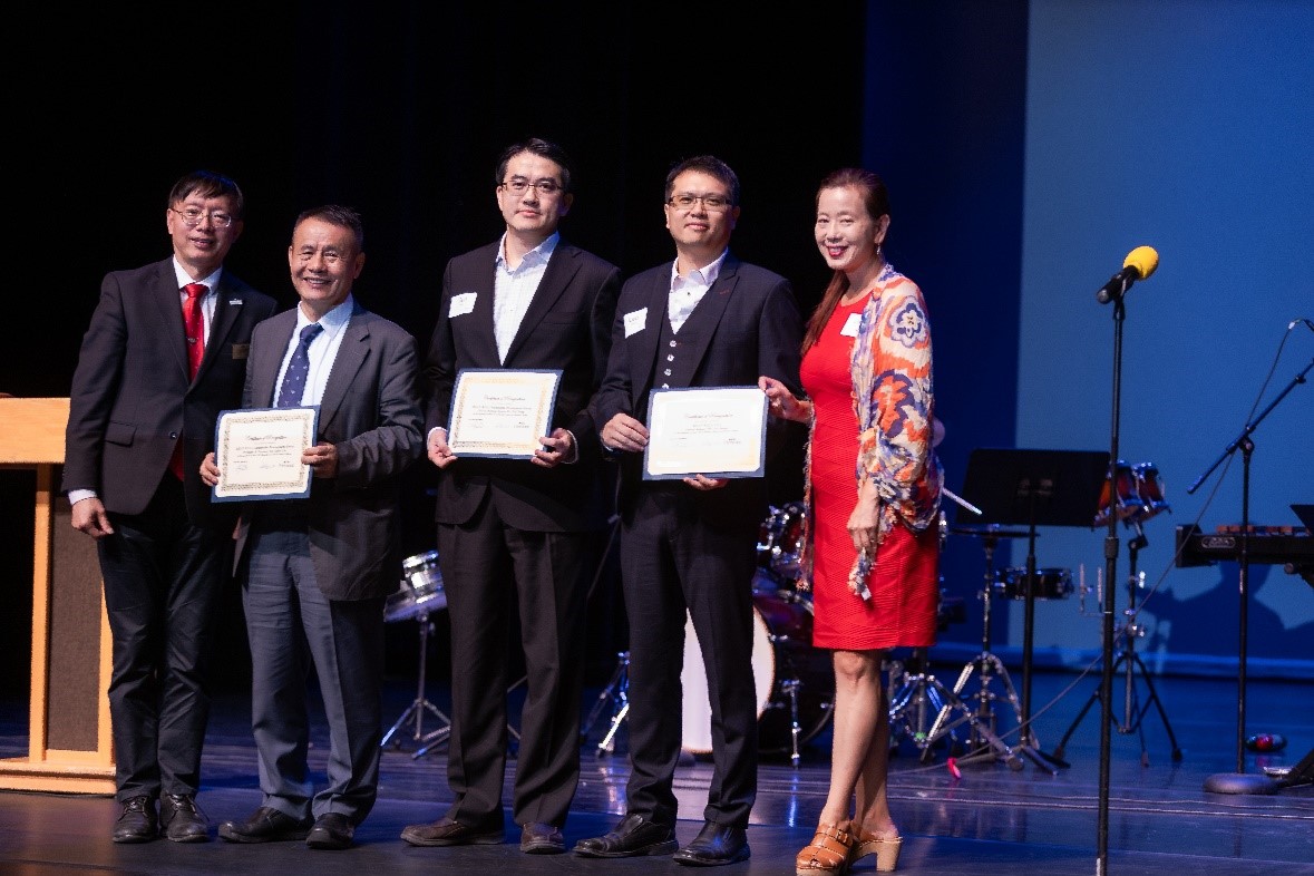 左始:Fremont市議員邵陽、 MW創辦人林先生、MW海外執行長Ted、MWUSA總經理Leo和Fremont市長Lily Mei