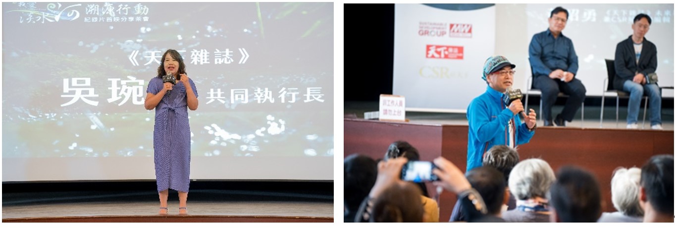 首映會當(dāng)日淡水河流域夥伴齊聚一堂,SDG集團創(chuàng)辦人林國棟致詞表達對淡水河兒時回憶與責(zé)任,並接受新北市政府環(huán)保局代表頒發(fā)感謝狀;天下雜誌共同執(zhí)行長吳琬瑜表示「從沒看過有一個專案可以有那麼大的影響力」,至今已累積 500 家公私組織簽署《淡水河公約》,特別向林先生及現(xiàn)場來賓致意,並期許「天下要做就要做出影響力」;李鴻源教授道出淡水河的瓶頸及挑戰(zhàn),需連結(jié)政府、學(xué)校、NPO、企業(yè)資源共同守護淡水河,才能發(fā)揮最大的力量。