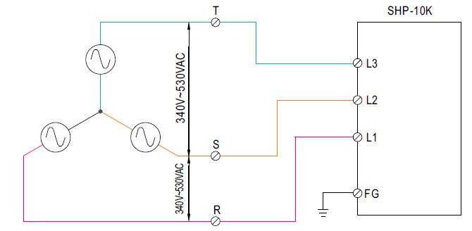 圖二 三相三線/Y340VAC~530VAC配置圖