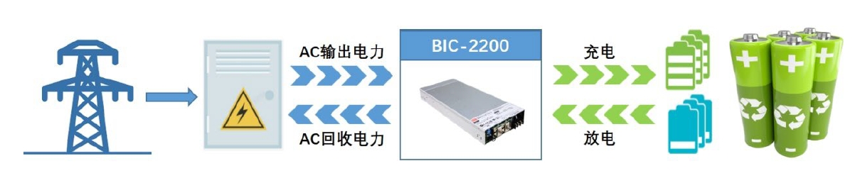 隨著“淨(jìng)零碳排”目標(biāo)的推進(jìn),新能源汽車、光伏等產(chǎn)業(yè)不斷發(fā)展,帶動鋰電池產(chǎn)業(yè)規(guī)模持續(xù)擴(kuò)大。在鋰電池產(chǎn)業(yè)發(fā)展中,無論是在生產(chǎn)端的充放電測試,還是到家用儲能系統(tǒng)的備用能源,雙向電源都扮演了不可或缺的角色。明緯雙向電源 BIC-2200 系列適用於各類電池生產(chǎn)工廠。在電池化成與分容階段 (如圖1.),使用 BIC-2200 對電池充電,同時也可將電池釋放的能量回饋至電網(wǎng)供其他 AC 設(shè)備使用,降低企業(yè)用電成本。