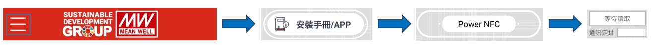 1. 打開明緯 APP → 左上角選單 → 安裝手冊/APP → Power NFC