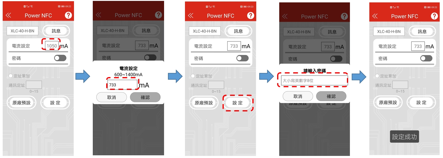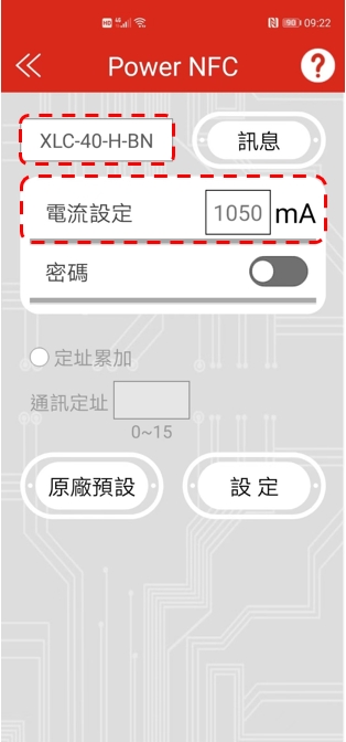 如下簡單說明如何透過 NFC 功能設定輸出電流: