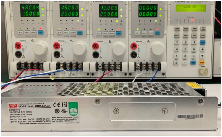 UMP-400機型基於主電源+DC-DC模組組合式設計,一組主輸出加上三組DC-DC通道,共四組輸出電壓。每一路輸出都有單獨的閉迴路回授控制回路,各自互不干擾。每一組可以根據客戶實際應用帶載,完全不受限於其他組別。