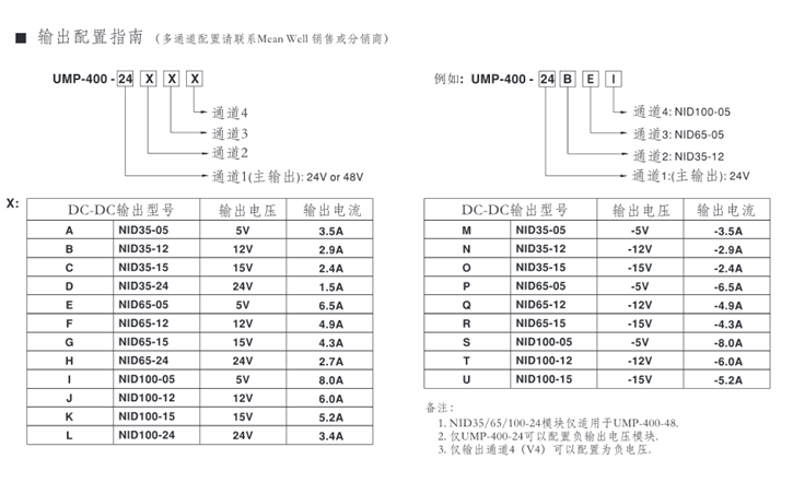 如下圖2,1臺UMP-400-48搭配1臺NID100-15,1臺NID100-12共3組輸出。