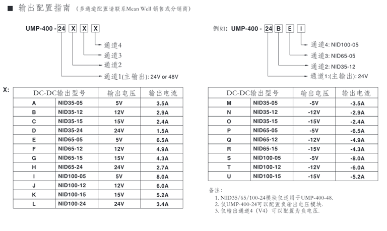 1. NID系列採(cǎi)用輸入與輸出非隔離降壓線路設(shè)計(jì),輸入電壓需大於輸出電壓,故NID35/65/100-24必須選擇UMP-400-48當(dāng)作前級(jí)。